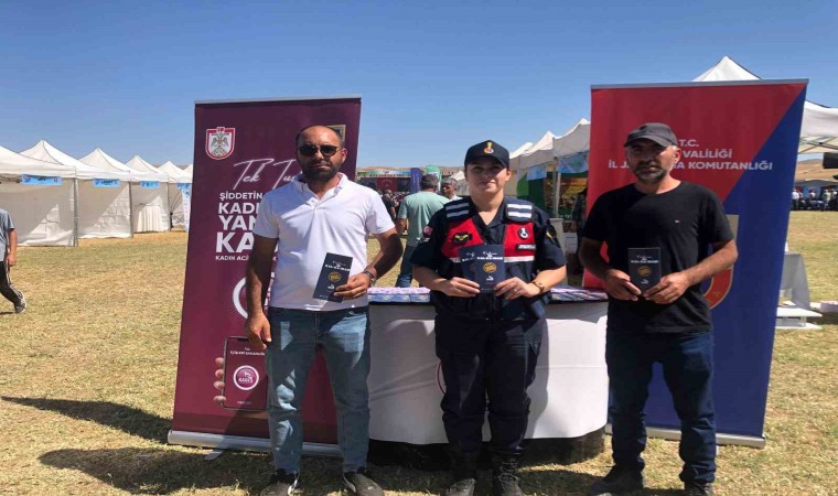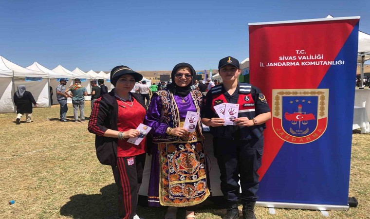 Sivas’ın Çallı köyünde düzenlenen festivalde jandarma ekipleri tarafından vatandaşlara, Kadına El Kalkamaz ve Kadın Acil Destek (KADES) uygulaması anlatıldı.