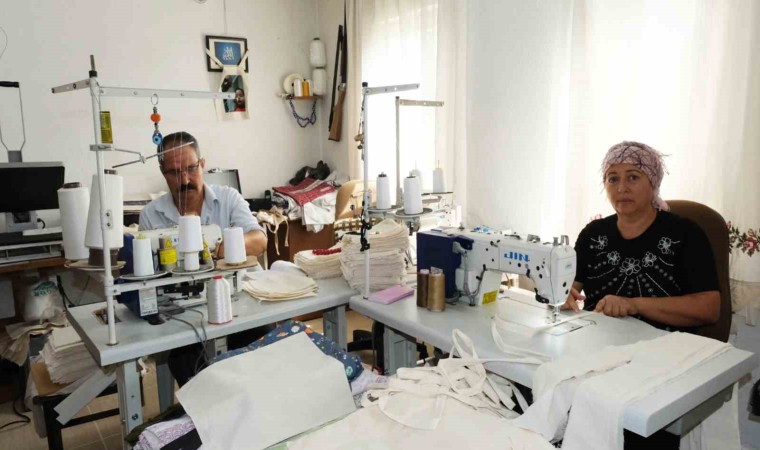 54 yaşında emekli olduktan sonra kursuna gittiği biçki, dikiş, baskı ve nakış kursu sonrası küçük bir makine ile başladığı işinde şimdi siparişlere yetişemiyor. Denizli ve İstanbul’dan aldığı değişik renk ve desendeki rule bezleri siparişlere göre kesiyor, dikiyor ve istenilen renkte logosu ile baskı yapıyor.