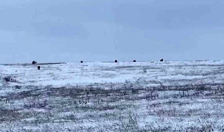 O anları telefonuyla kaydeden Latif Keskinoğlu, “Bugün sabah 9 sıralarında kurtları çiftliğin hemen yakınlarında gördük. Saydığımda tam 9 büyük kurt vardı. Bağırmamıza, etraflarında 2 tur atmamıza rağmen gitmediler. En son dağın arkasındaki yoldan giderek korkutunca dağıldılar, dağa doğru kaçtılar” dedi.