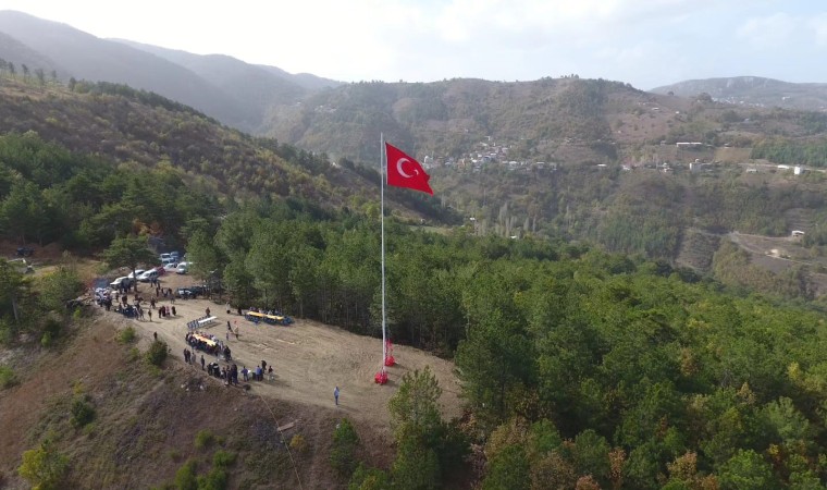 Bursa’da köylüler kendi aralarında 3 yıl para biriktirerek, cumhuriyetin 100. yılında 23 metre uzunluğunda bayrak dikti. Tüm civar köylerden görülebilen ihtişamlı bayrak, görkemli bir törenle göndere çekildi.