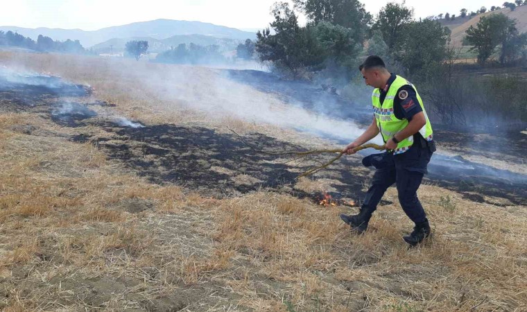 İhbar üzerine bölgeye arazöz ve jandarma ekipleri sevk edildi. Köydeki vatandaşlar, jandarma ekipleri ve arazözlerle yangın güçlükle söndürüldü. Yangının yayılmasını önlemek amacıyla köydeki vatandaşlar traktörlerle tarlayı sürerek alevlerin önüne geçti.