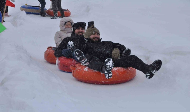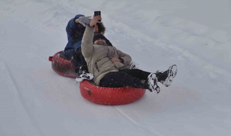Günübirlik tatil için İstanbul’dan gelen bir grup arkadaş, kayak yapmanın eğlenceli olduğunu ifade etti.