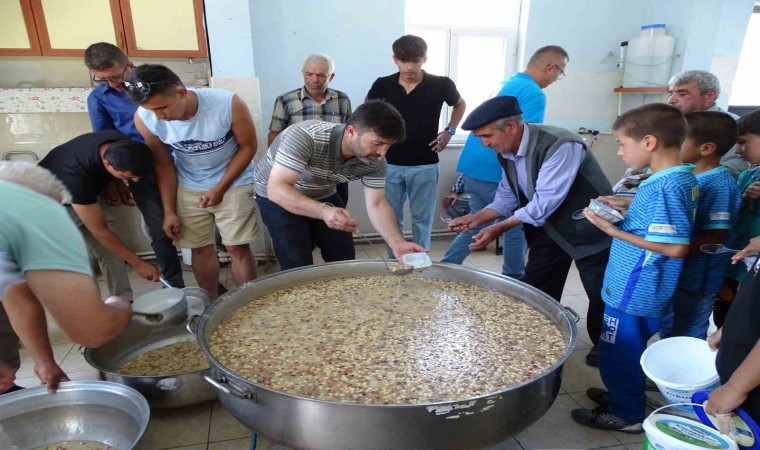 Kütahya’nın Hisarcık ilçesi Kutluhallar köyünde görev yapan cami imamı İsmail Kocabıyık, 14 yıldan beri köyün geleneksel aşure tatlısını pişiriyor.