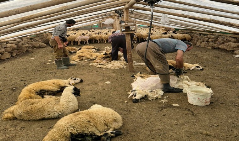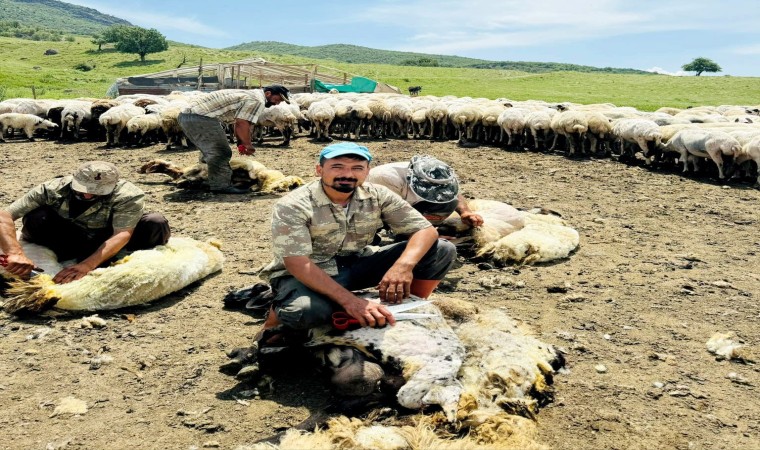 Tunceli’nin Çemişgezek ilçesinde koyun kırkma dönemi başladı. Çiftçiler koyun kırkma makasının yanı sıra elektrikli makinelerle de hayvanları tıraş ediyor.