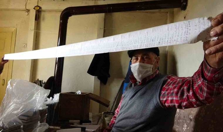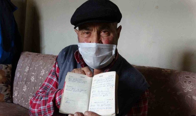 "1954 yılında askere gittim. Bir yıl askerliğimi yaptıktan sonra arkadaşımın parasını yatırmak için bankaya uğradım. Bankada bana bir takvim verdiler ve o takvime arkadaşımın parasını yazdım. Ondan sonra önemli anları yazmaya başladım. Günlük ne yaparsam, nereye gidersen gördüğüm ve duyduğum önemli anları bu yaşıma kadar yazmaya devam etti. Günlüklerimi matbaanın çıkardığı yıllık takvimlere yazıyordum. Ama son yıllarda bu takvimler çıkarılmayınca başka takvimlere yazamaya başladım. Notlarıma; köyümüzden göç hangi tarihte başladıysa o günden bu güne göç edenleri tek tek yazmaya başladım" dedi.