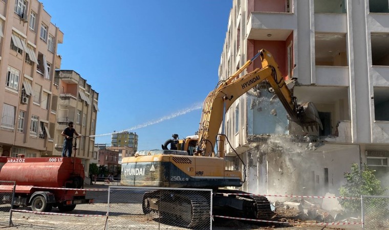Adana’nın Kozan ilçesinde 6 Şubat depremlerinde ağır hasar alan binaların yıkımına 18 ay sonra başlandı.