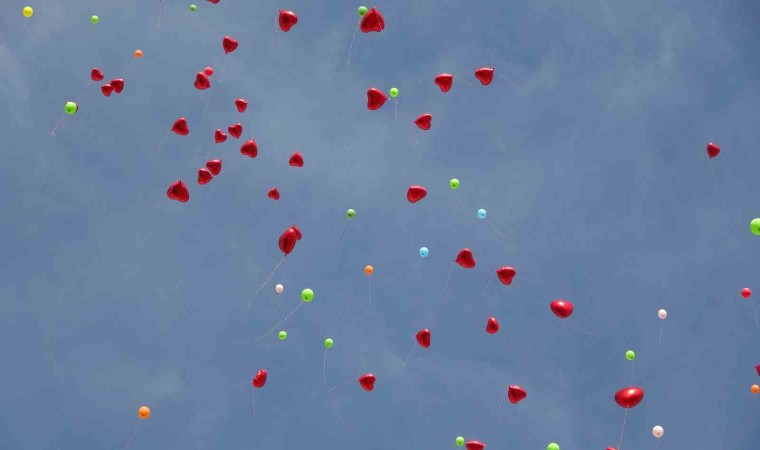 Konuşmaların ardından yüzlerce öğrenci kırmızı balonlarını aynı anda gökyüzüne bıraktı.