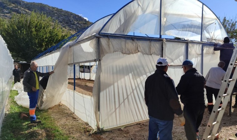 Belediye Başkanı Kazım Özgan da ilçede rüzgarlı havanın sürdüğünü kaydederek, "Ekiplerimiz devam eden fırtınada diğer seraların zarar görmemesi için seferber oluyorlar” dedi.