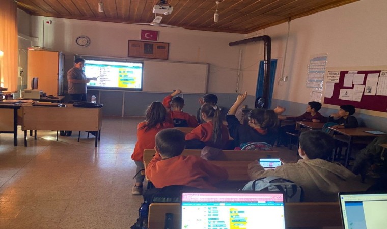 Gönüllü eğitmen Bilgisayar Teknolojileri Bölüm Başkanı Öğretim Görevlisi Dr. Adnan Gökten, öğrencilerle birlikte köy okulundaki öğrencilere teknolojiyi kullanarak robotik kodlamanın temellerini öğretti.
