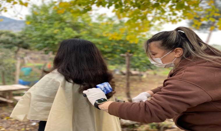 Yaşlılar ve çocuklar, ADEM projesi çerçevesinde evlerinde ücretsiz kuaförlük hizmeti alıyor.
