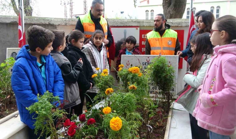 Jandarma ziyareti sonrası Kozan şehitliğini ziyaret eden öğrenciler, şehitlere dua ederek karanfil bıraktı. Çıkışta “Şehitler ölmez, vatan bölünmez” diyerek Mehmetçiğin yanında olduklarını ifade ettiler.