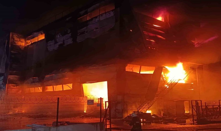 3 saattir yanan kozmetik fabrikası adeta hurdalığa dönerken itfaiye ekipleri alevlerle mücadele etmeye devam ediyor.