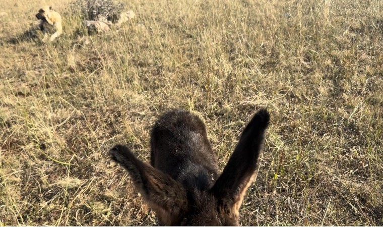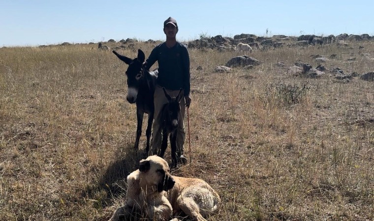 Çoban Azat Miroğlu, daha önce koyuna sahip çıkan Kral isimli köpeklerinin bu kez de eşeğe sahip çıkarak gerçek bir kral olduğunu ispatladığını söyledi.
