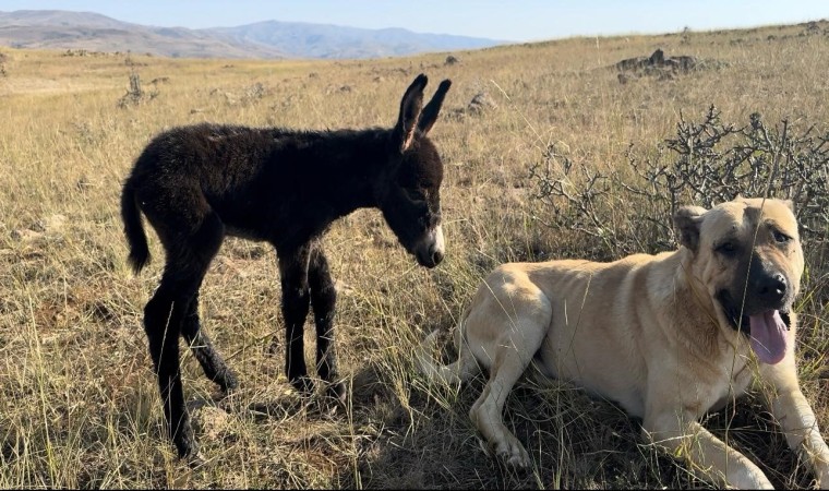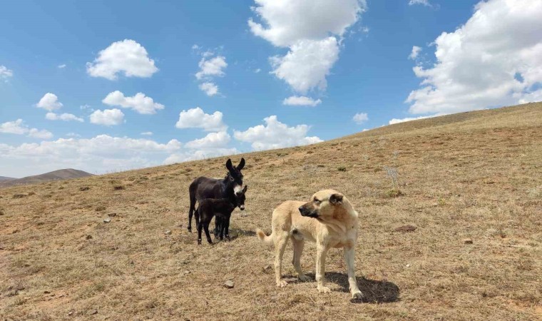 Erzurum’da yaklaşık 3 ay önce sürüden ayrılarak doğum yapan koyunun yanında 2 gün kalan ’Kral’ adlı köpek, bu kez doğum yapan eşeği yalnız bırakmadı. Çoban Azat Miroğlu, köpeğinin adı gibi bir kral olduğunu ispatladığını söyledi.