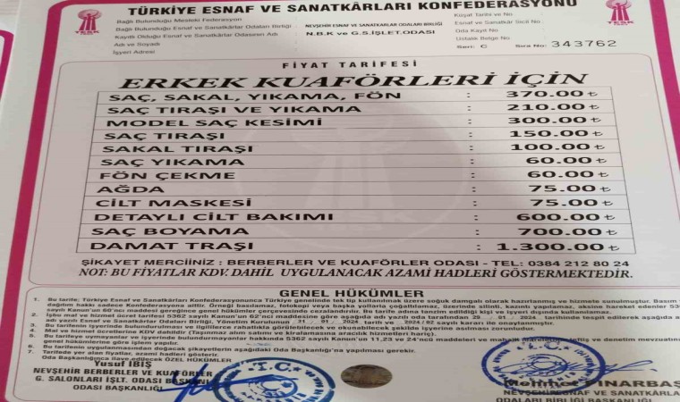 Nevşehir’de Berberler ve Kuaförler Odası tarafından alınan karar sonrası berber kuaför ücretlerine zam yapıldı.