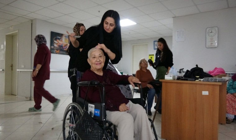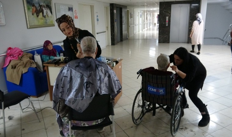 Karabük’te berber ve kuaförler, ziyaret ettikleri huzurevinde yaşlılara ücretsiz tıraş ve saç bakımı yaptı.