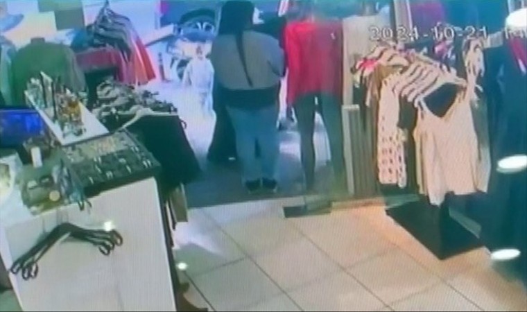 Güvenlik kamerasına yansıyan görüntüde Özlem Barçin’in mağaza önünde durduğu görülüyor. Mağazadaki personellerin Özlem Barçin’e yardım ederek ne alacağı konusunda yardım ettiği esnada küçük yaşta çocuğun içerisinde altın ve eşyaların olduğu çantayı alıp gittiği görülüyor. Polis ekiplerinin şüphelileri yakalamak için çalışmalarının devam edildiği öğrenildi.