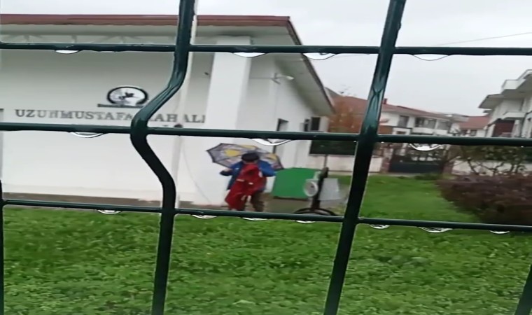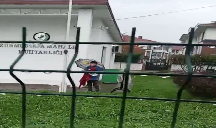 Düzce’de etkili olan fırtına sebebiyle direkten kopan Türk bayrağını gören çocuğun tepkisi duygulandırdı.