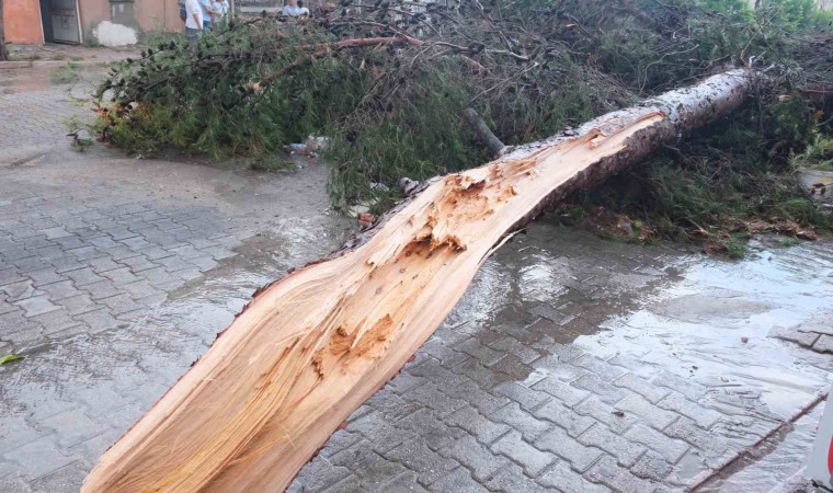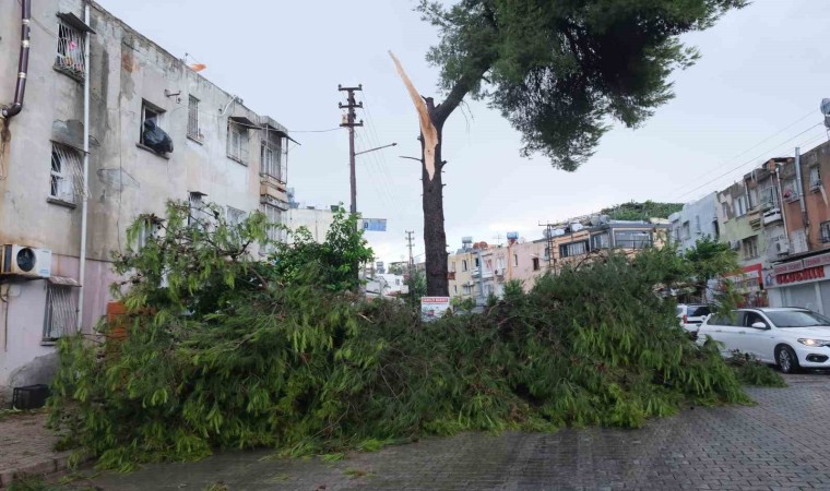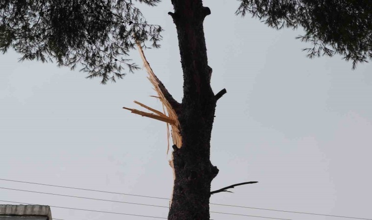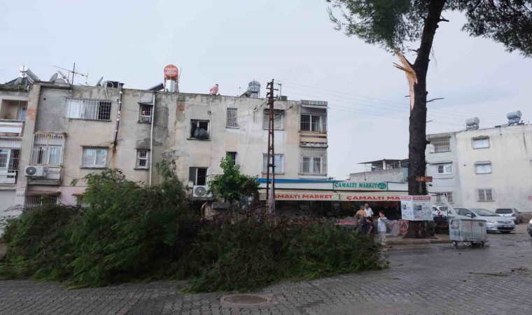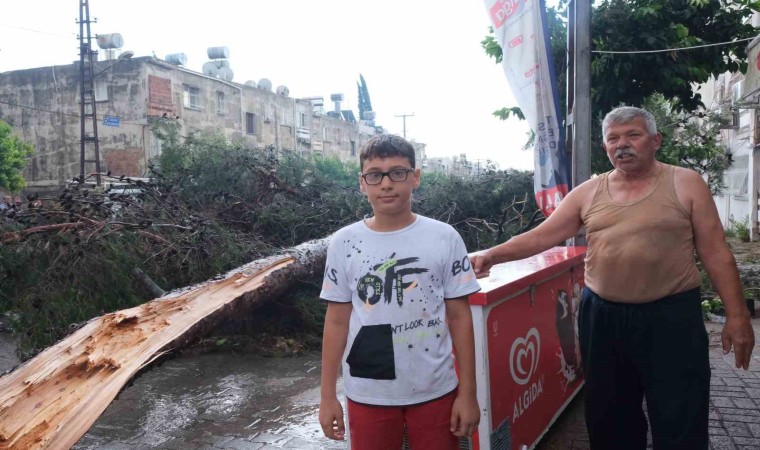 Olay, Çukurova ilçesine bağlı Belediyeevleri Mahallesi’nde meydana geldi. 13 yaşındaki Çınar Karskaya, cips almak üzere bakkala gitti. Aniden bastıran yağmurun ardından çıkan fırtınada bakkalın önünde bulunan cips standı hareketlendi. Küçük Çınar’ın standı kontrol altına almak istediği sırada bakkalın yanında bulunan ağaç ortadan ikiye ayrılarak çocuğun birkaç metre ötesine düştü. Korku dolu anlar yaşayan çocuk kendisini dükkanın içerisine atarken, esnafın ailesine haber vermesi üzerine zorlukla sakinleşti.