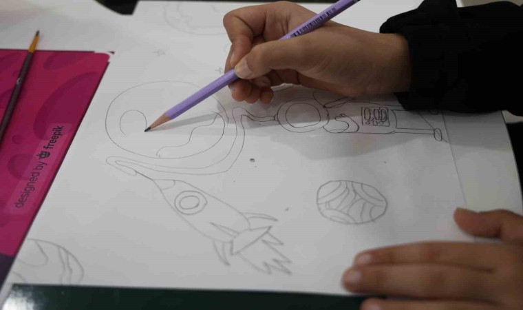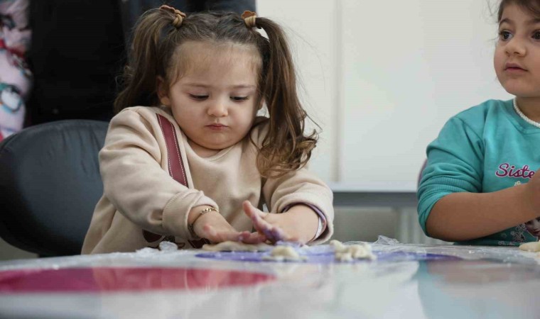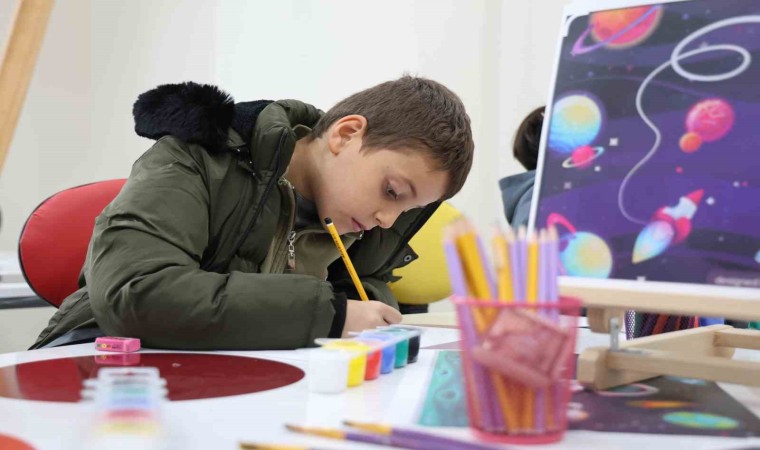 Elazığ’da küçük çocuklar, sanat evinde bir araya gelerek savaş ve afetlerin olmadığı bir dünyayı resim kağıtları ve oyun hamuruna yansıttı.