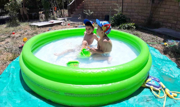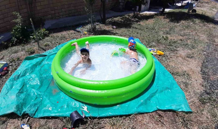Çocukların annesi Zeynep Ülker, “Denize gidemediğimiz için çocuklarımızı da evimizin bahçesinde almış olduğumuz bu su havuzunda eğlenmelerini sağlıyoruz. Güzel vakit geçiriyorlar” dedi.