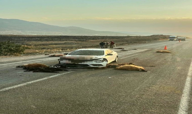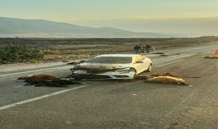Hatay’da karşıdan karşıya geçen küçükbaş hayvan sürüsünün arasında dalan otomobilin çarptığı 17 hayvan telef oldu.