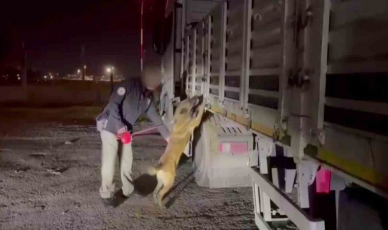 Adana Emniyet Müdürlüğü Narkotik Suçlarla Mücadele Şube Müdürlüğü ekipleri, küçükbaş hayvan taşıyan tırı durdurdu. Tırda dedektör köpek arama yaparken, küçükbaş hayvanların yüklü olduğu kasaya tepki verdi.