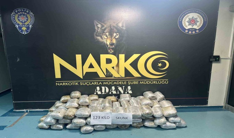 Adana’da narkotik polisleri, küçükbaş hayvan yüklü tırın kasasında 123 kilo skunk ele geçirdi. Olayla ilgili 2 kişi tutuklandı.