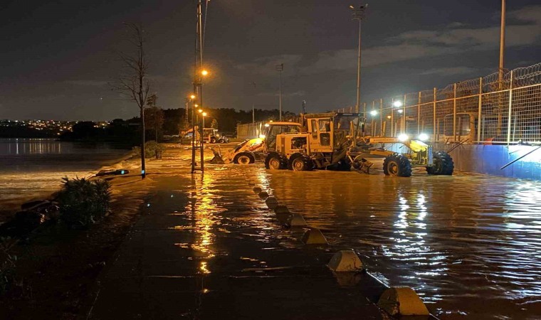 İstanbul’da etkili olan sağanak yağış nedeniyle Küçükçekmece Belediyesine ait garaj sular altında kaldı. Birçok araçta hasar oluşurken su tahliyesi için garajın duvarları belediye ekipleri tarafından yıkılıyor. Sel nedeniyle yol ile Küçükçekmece gölü adeta aynı seviyeye gelirken belediye ekipleri sahada çalışmalarını sürdürüyor.