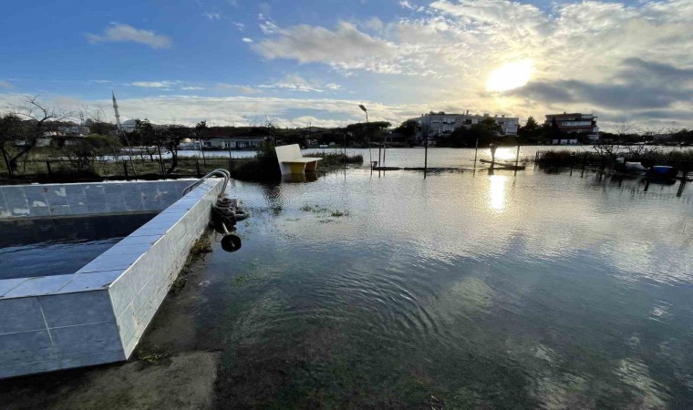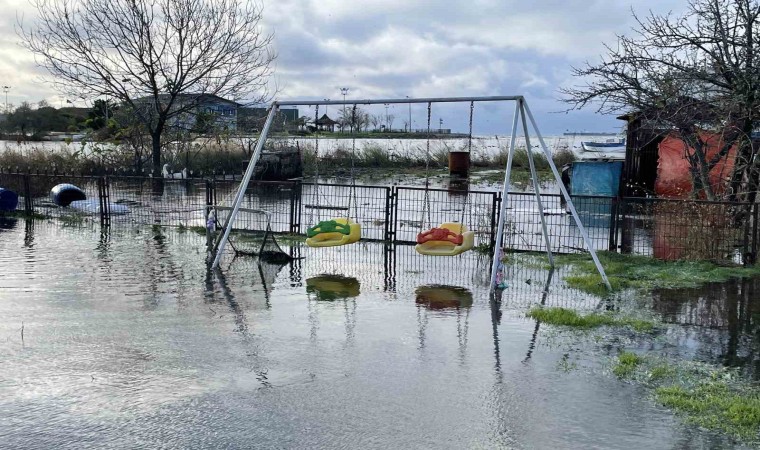 Küçükçekmece’de göl seviyesi yükseldi, bazı evlere su bastı.