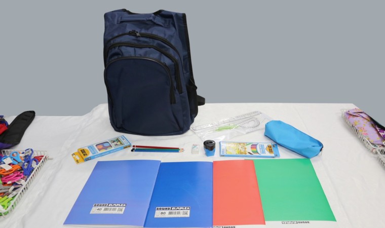 Kırtasiye setinin içerisinde; çanta, kalem kutusu, makas, kurşun kalem, suluboya, defter, silgi, kalemtıraş ve cetvel seti gibi öğrencilerin temel ihtiyacı olan ürünler bulunuyor.