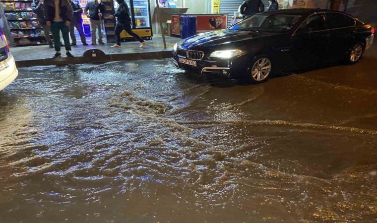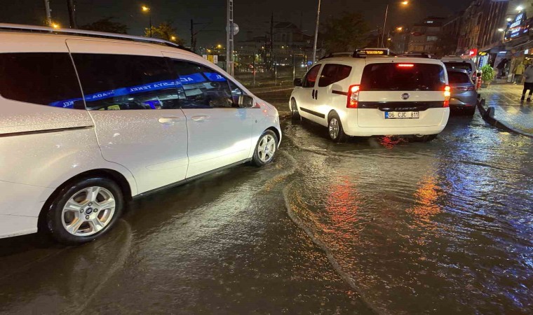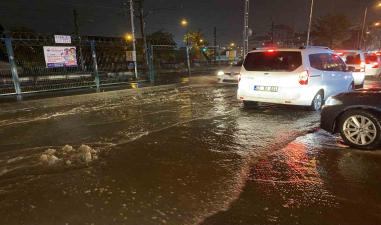 İstanbul’da öğle saatlerinde başlayan sağanak yağış ve fırtına etkisini sürdürürken yağış nedeniyle bazı yollar göle döndü.