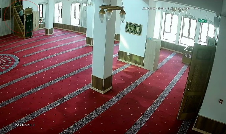 Küçükçekmecede caminin mikrofonunu çalan şahıs kamerada
