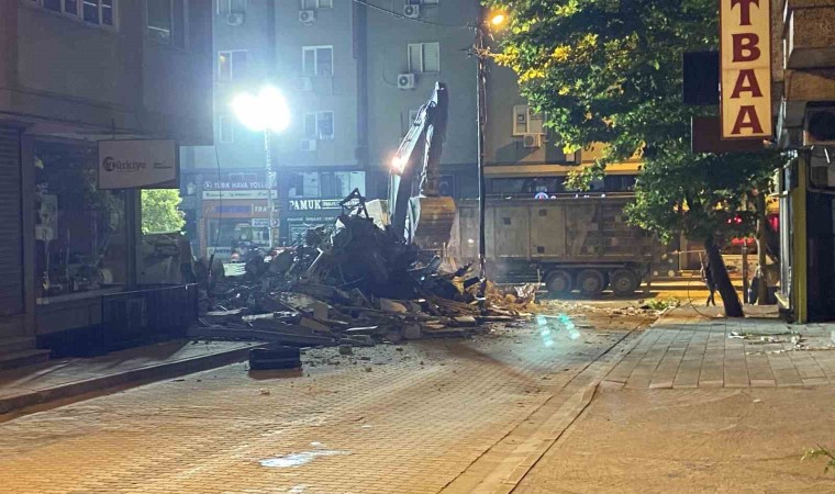 Küçükçekmece’de sabah saatlerinde meydana gelen ve 1 kişinin öldüğü, 8 kişinin ise yaralandığı 3 katlı binanın çökmesi olayı sonrası yan tarafta bulunan ve tedbir amaçlı olarak boşaltılan 3 katlı bina kontrollü bir şekilde yıkıldı. Çöken binanın bitişiğinde bulunan ve tamamen yıktırılan binada enkazlar ile molozların temizleme işleminin ise gecenin ilerleyen saatlerine kadar süreceği öğrenildi. Çöken bina ile yıkılan binanın yer aldığı Belediye Caddesi’nin en kısa zamanda trafiğe açılması için ekipler yoğun çalışmalarını sürdürdü.