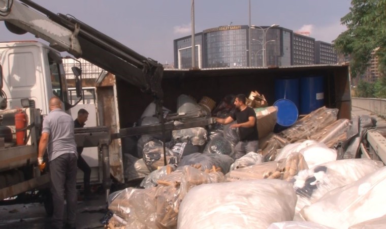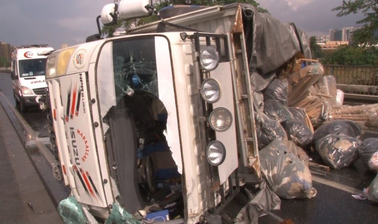Küçükçekmece E5 Karayolu yan yolda devrilen kumaş yüklü kamyonet yaklaşık iki saatlik çalışmanın ardından kaldırıldı. Kamyonetin kaldırılmasının ardından trafik normale döndü.