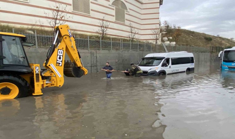 İşçi servisi sürücüsü, “Yağmur yağıyordu, geçerim sandım ama suda kaldı. Esenyurt’a gidecektim, arabada benle beraber 8 kişi vardı. İtfaiye kurtardı” dedi.