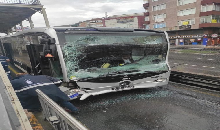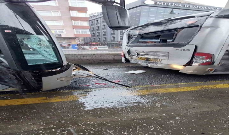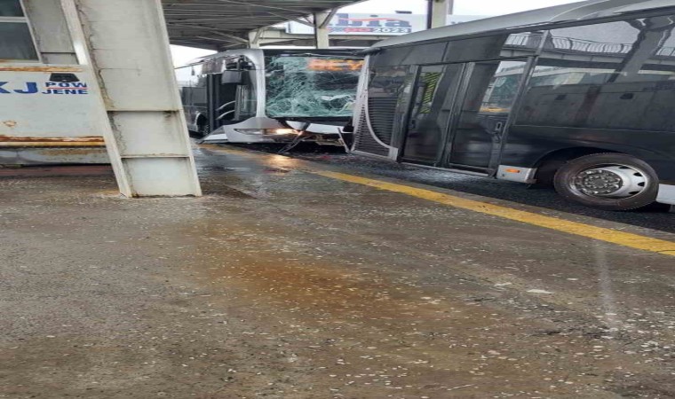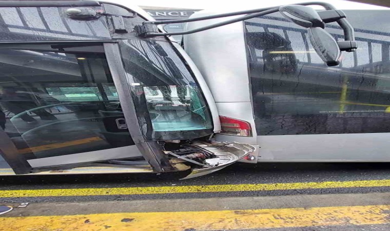 Küçükçekmece’de iki metrobüs kafa kafaya çarpıştı. Kazada yaralanan olmadı.