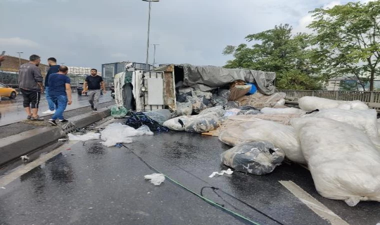 Vedat BAYRAKTAR - İSTANBUL DHA - KÜÇÜKÇEKMECE Sefaköy D-100 Karayolu yanyolda bir kamyonet devrildi. Kamyonetteki çuvallar yola saçılırken sürücü ise yaralandı. Kaza nedeniyle yol trafiğe kapatıldı, trafik aksıyor.(FOTOĞRAF)
