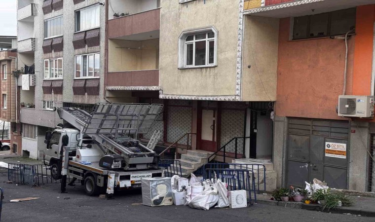 Küçükçekmece’de geçtiğimiz pazar günü kolonları patlayan ve yapılan incelemelerin ardından ağır hasarlı olduğu belirlenen bina tahliye ediliyor.