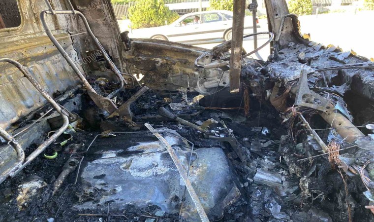 Öte yandan, kamyonetin yandığı anlar çevredeki vatandaşların cep telefonu kamerasına yansıdı.