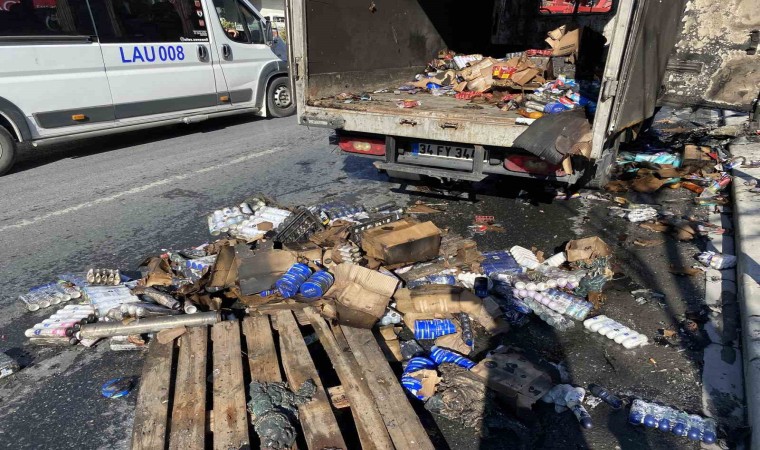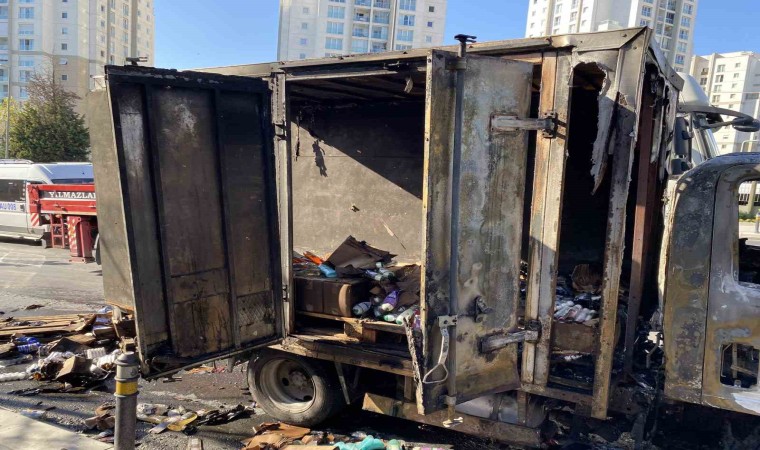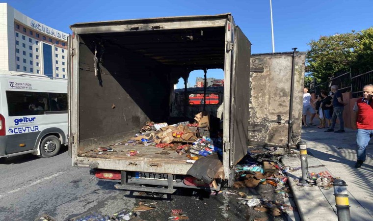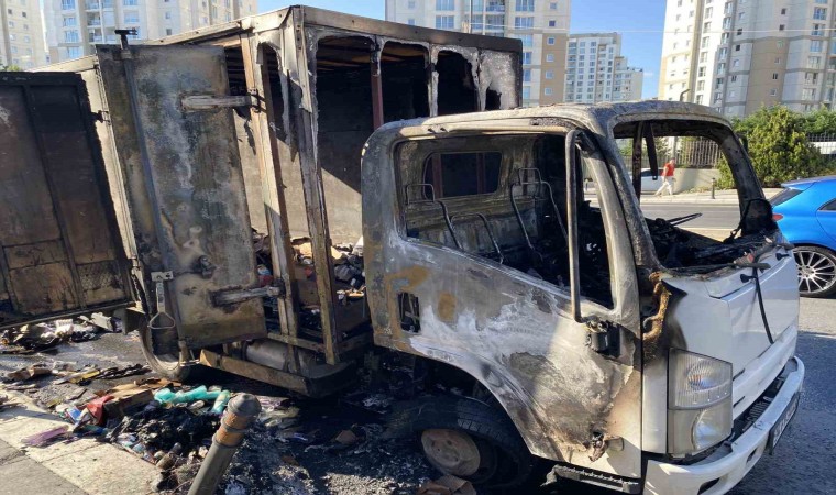 İstanbul Küçükçekmece’de, seyir halindeki kozmetik ürün yüklü kamyonette yangın çıktı. Kamyonet kısa sürede hurdaya dönerken, o anlar cep telefonu kamerasına yansıdı.