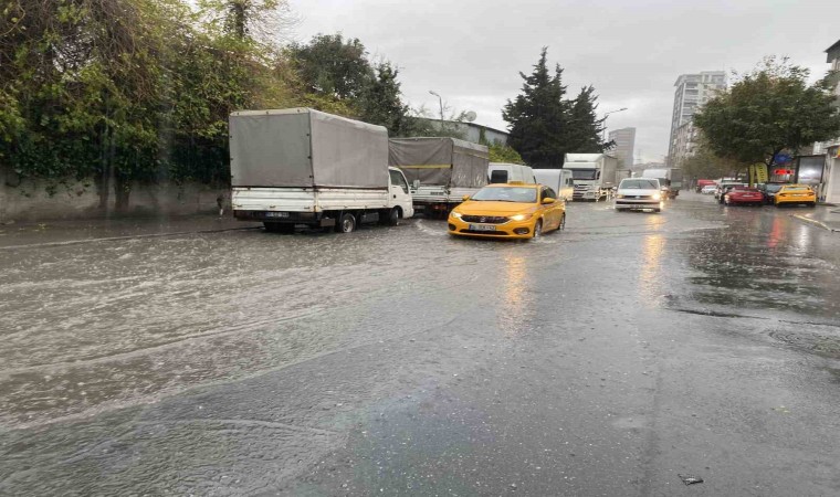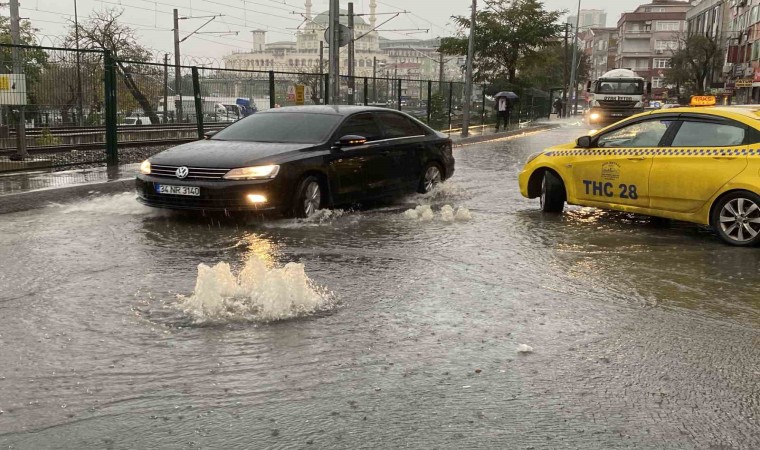 Küçükçekmece’de sağanak yağışta rögarlar taştı, yollar göle döndü. Bazı binaların ise girişini su bastı.