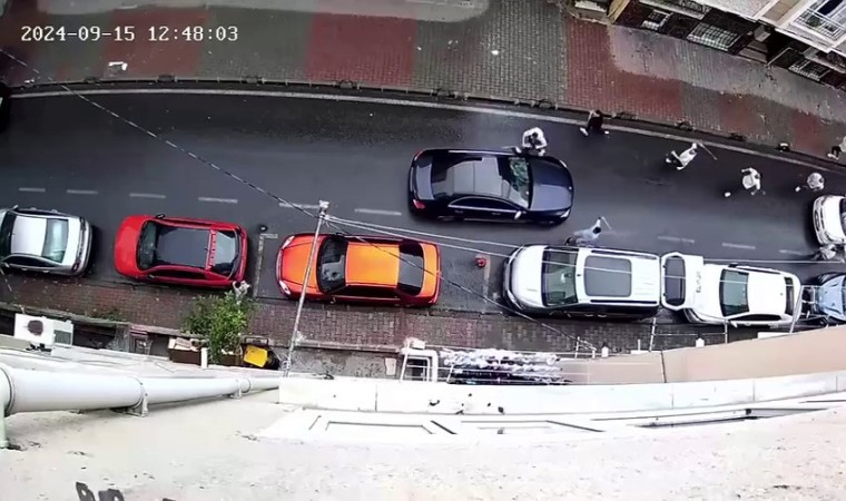 Küçükçekmece’de yabancı uyruklu şahısların kavgasında ortalık bir anda karıştı. Olay yerinden kaçamaya çalışan şahısların aracının üzerine çıkıp tekmeleyen, camlarını sopalarla parçalayan zanlılar kameraya yansıdı.