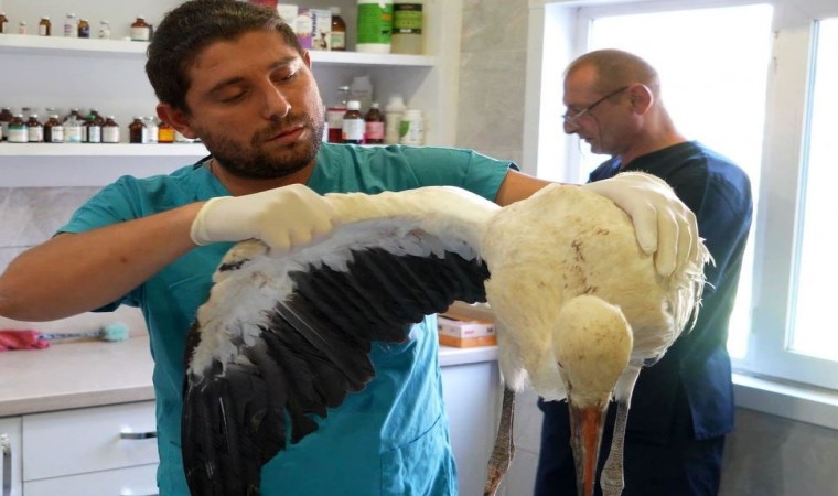 Bir süredir tedavi altında olan leylekle birebir ilgilenen Veteriner Hekim Mert Çağlar Kılıç, “Bölge ekiplerine gelen ihbar neticesinde yaralı leyleği merkezimize aldık. İlk müdahalesinin ardından sağ kanadında bir düşüklük olduğunu, röntgen çektiğimizde sağ omzunda çıkık meydana geldiğini fark ettik. Uzun zamandır beslenemediği için bir halsizlik durumu var. Şu an yoğun bakım ünitesine aldık. Damar yolu açıldı, serum tedavisi devam ediyor. Tedavisinin ardından leyleği doğal yaşam alanına bırakacağız” diye konuştu.