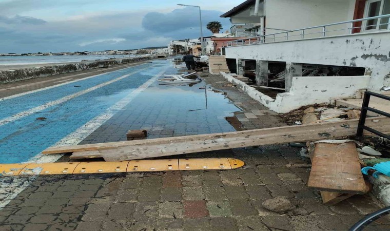 Ayvacık ilçesine bağlı Küçükkuyu beldesinde ise gece boyu devam eden şiddetli fırtına hayatı olumsuz etkiledi. Karaya vuran dev dalgalar sahil kesimindeki iskele ve duvarlara zarar verdi. Kopan taş ve tahta parçaları sahil yolu üzerine dağıldı. Gece boyu oluşan dev dağalar nedeniyle ölü bir yunus balığı da karaya vurdu.
