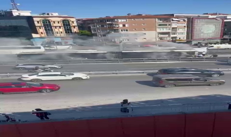 KÜÇÜKMEKÇE'DE METROBÜSTE YANGIN ÇIKTI