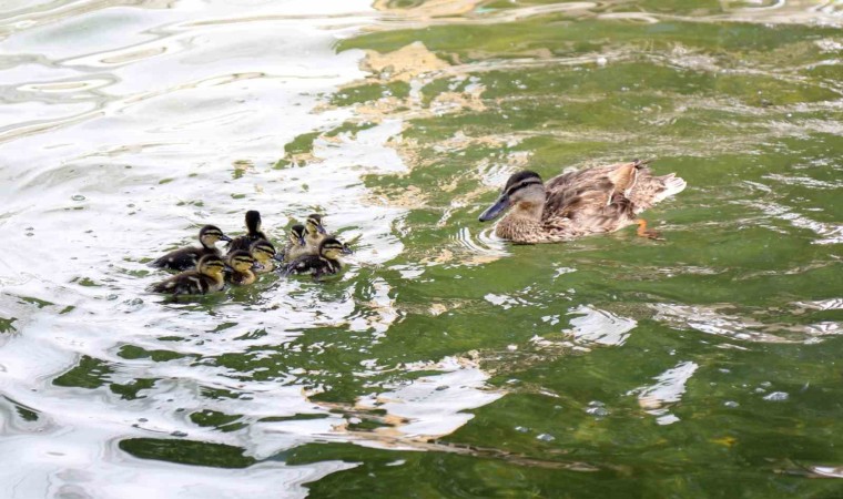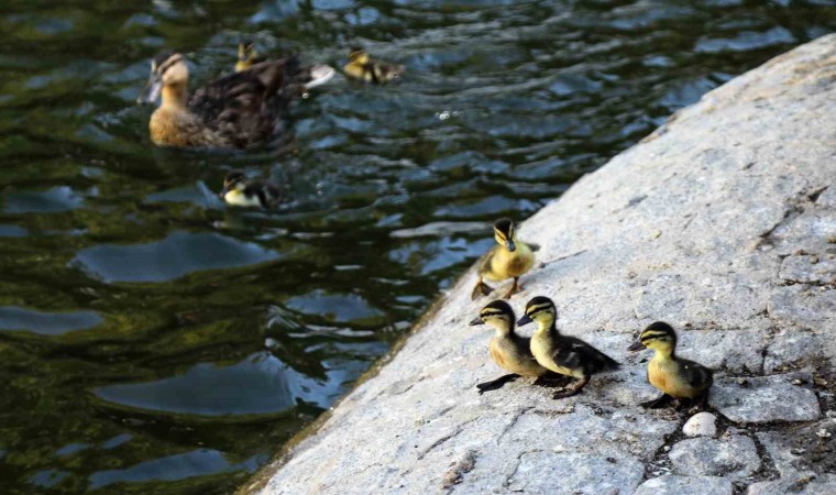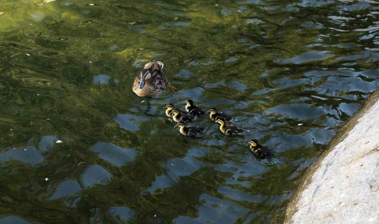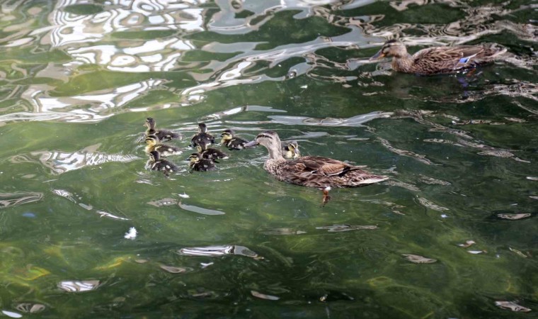 Ankara’nın simgelerinden Kuğulu Park, her yıl büyüyen kuğu, kaz ve ördek ailesiyle dikkat çekiyor. Bu yıl mart ayında aileye katılan 5 kuğunun ardından 19 Ağustos’ta 8 yavru ördek yumurtadan çıktı. Sıcak havayı fırsat bilerek suya bırakılan yavrular, annelerinin gözetiminde doğayla buluştu. Veteriner hekimlerin sağlık kontrollerini yaptığı yavrular, Kuğulu Park’ta ziyaretçilerini bekliyor.