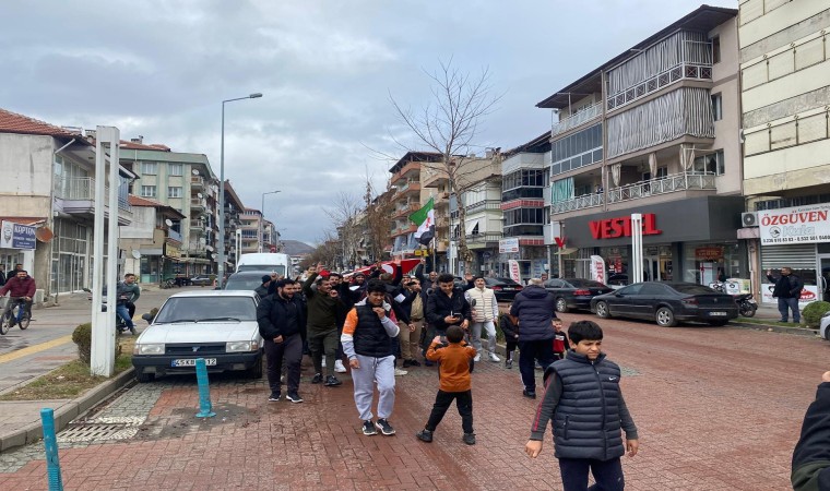 Manisa’nın Kula ilçesinde yaşayan Suriyeliler, Suriye’deki 61 yıllık Baas rejiminin devrilmesinin ardından konvoy oluşturarak sevinç gösterileri ve yürüyüş yaptı.