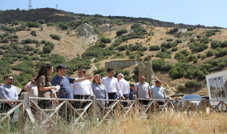 Manisa Valisi Enver Ünlü, ilçe ziyaretleri kapsamında beraberindeki heyet ile birlikte Kula’da çeşitli incelemelerde bulundu. İlk olarak Kaymakam Ömer Ahmet Özdemir, Belediye Başkan Vekili Semra Gündüz ve ilçe protokolü tarafından Türkiye’nin ilk ve tek Avrupa UNESCO tescilli Jeopark alanı içerisinde bulunan Kula Peribacaları’nda karşılanan Vali Ünlü, burada turizm potansiyelini artırmak amacıyla yapılması planlanan çalışmaları yerinde inceleyip ilgili birim amirlerinden bilgi aldı. İhtişamlı görünümüyle Türkiye’nin 107. Tabiat Anıtı olarak ilan edilen ve Kula’nın tarihini yansıtan Peribacaları’nda hayata geçirilmesi planlanan projelerle Kula’nın turizm hareketliliğinin de artacağını ifade eden Vali Ünlü, Türkiye’nin yerli ve milli otomobili TOGG’a renklerini veren Çakırca Sütun Bazaltlarını da ziyaret ederek, bölgedeki kaynakların turizme kazandırılması için yürütülen faaliyetler hakkında bilgi aldı. Kula’da tarımın yeni yüzü ve Ege Bölgesi’nin en büyük yatırımlarından biri olan ‘Jeotermal Kaynaklı Teknolojik Sera’da da incelemelerde bulunarak domates hasadı yapan Vali Ünlü, Kula ekonomisine can katacak bu projeyi geliştirmek için Manisa Valiliği, Kula Kaymakamlığı ve Kula Belediyesi olarak var güçleriyle çalıştıklarını dile getirdi.