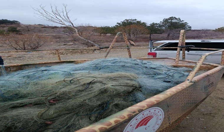Afyonkarahisar’da Tarım ve Orman İl Müdürlüğü ekipleri Selevir Gölü’nde kullanımı yasak olan 7 bin metre uzatma ağına el koydu.